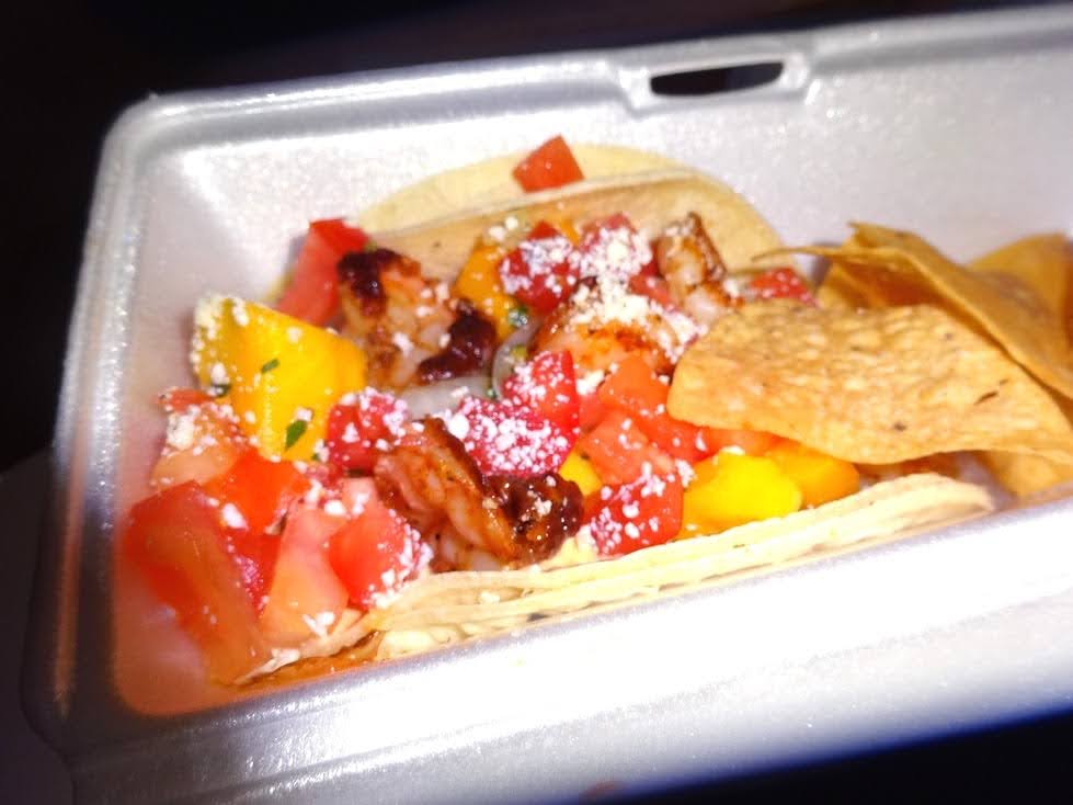 私の頼んだエビとマンゴーのタコスがとっても美味しかったです。