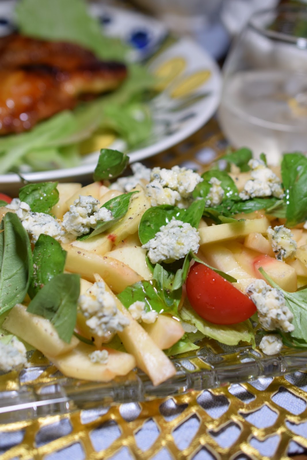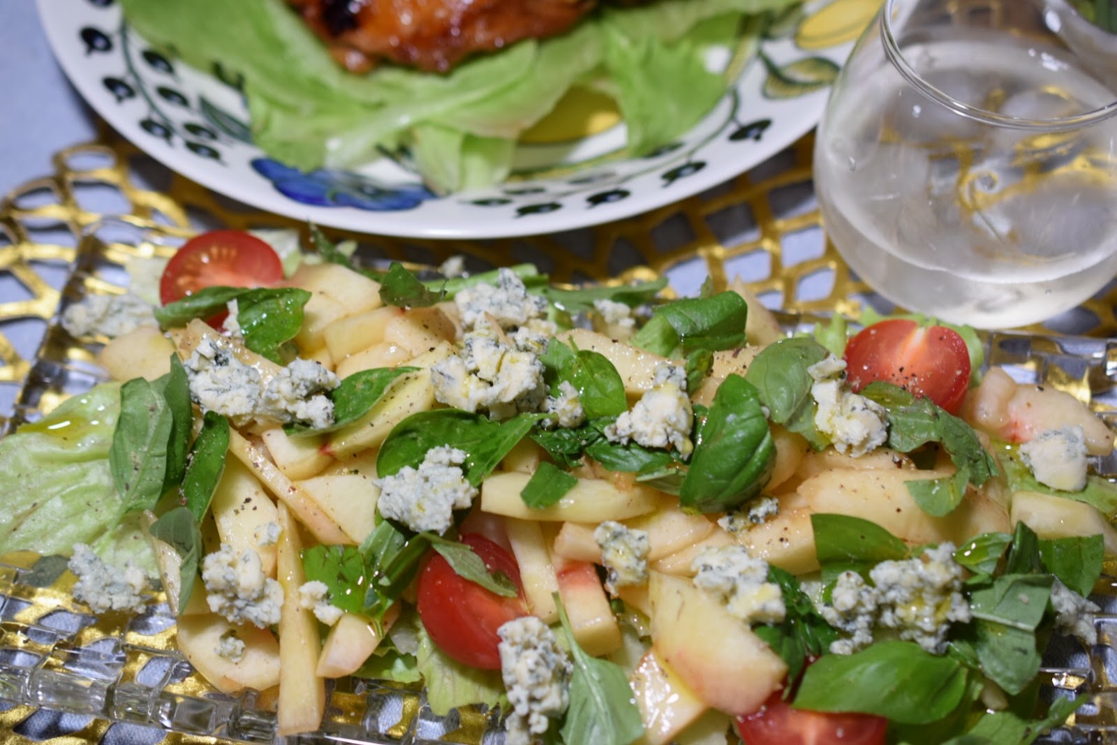 昨年くらいから、「桃モッツアレラ」というものがネットで話題になっていますが、冷蔵庫にモッツァレラチーズがなかったので、桃とブルーチーズと和えてみました。